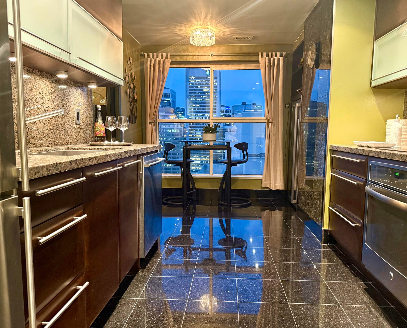 CORNER Suite in ICONIC Vancouver Tower at 909 Burrard in Vancouver's prestigious West End. This exclusive 1,777 sq ft, 3-BEDROOM, 3 BATH residence features: seldom found LARGE-SIZE rooms; VIEWS from every room with floor-to-ceiling windows framing breathtaking views and magnificent SUNSETS! Chef kitchen with BREAKFAST nook; GORGEOUS baths; elegant BUILT-IN's, central AC, separate LAUNDRY ROOM complete with sink to name only a few of all the GREAT features. Full range of amenities: a dedicated 24-hour concierge; indoor pool, hot tub, sauna & steam room; secure bike storage, 2 side-by-side parking; storage locker. Perfectly positioned near Robson & Alberni Streets for upscale shopping, acclaimed restaurants AND effortless access to the city's most celebrated destinations!